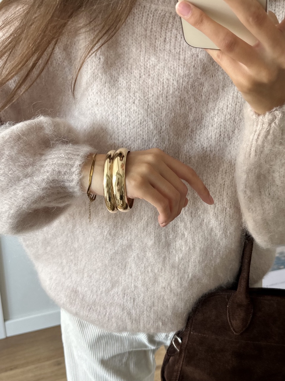 Puszysta, lekko włoskowata faktura nadaje mu wyjątkowego charakteru – wygląda bardzo klasycznie, a przy tym jest niezwykle miękki, otulający i komfortowy w noszeniu.
