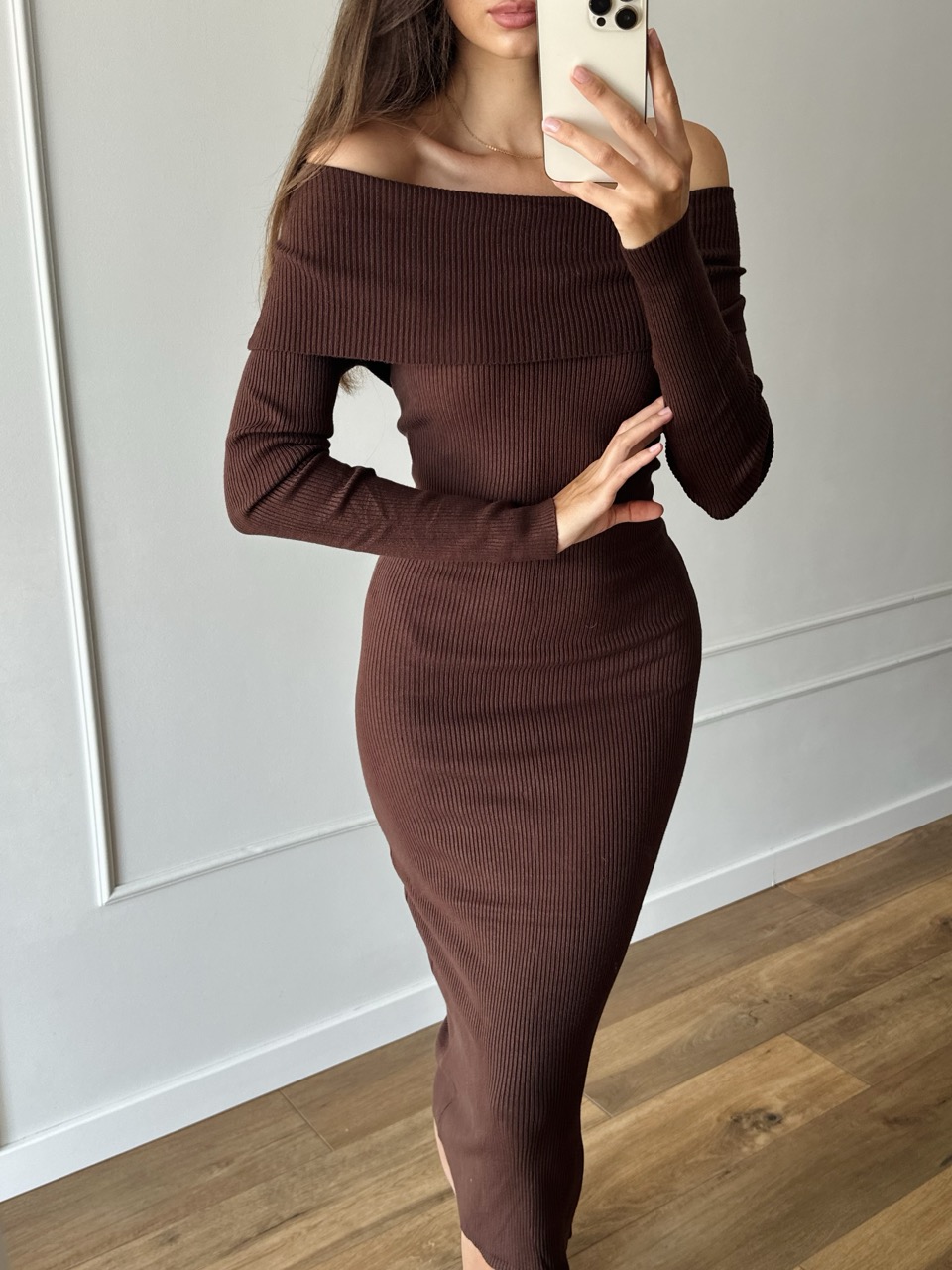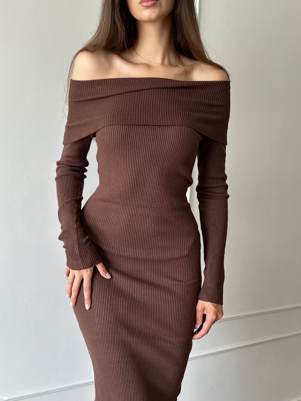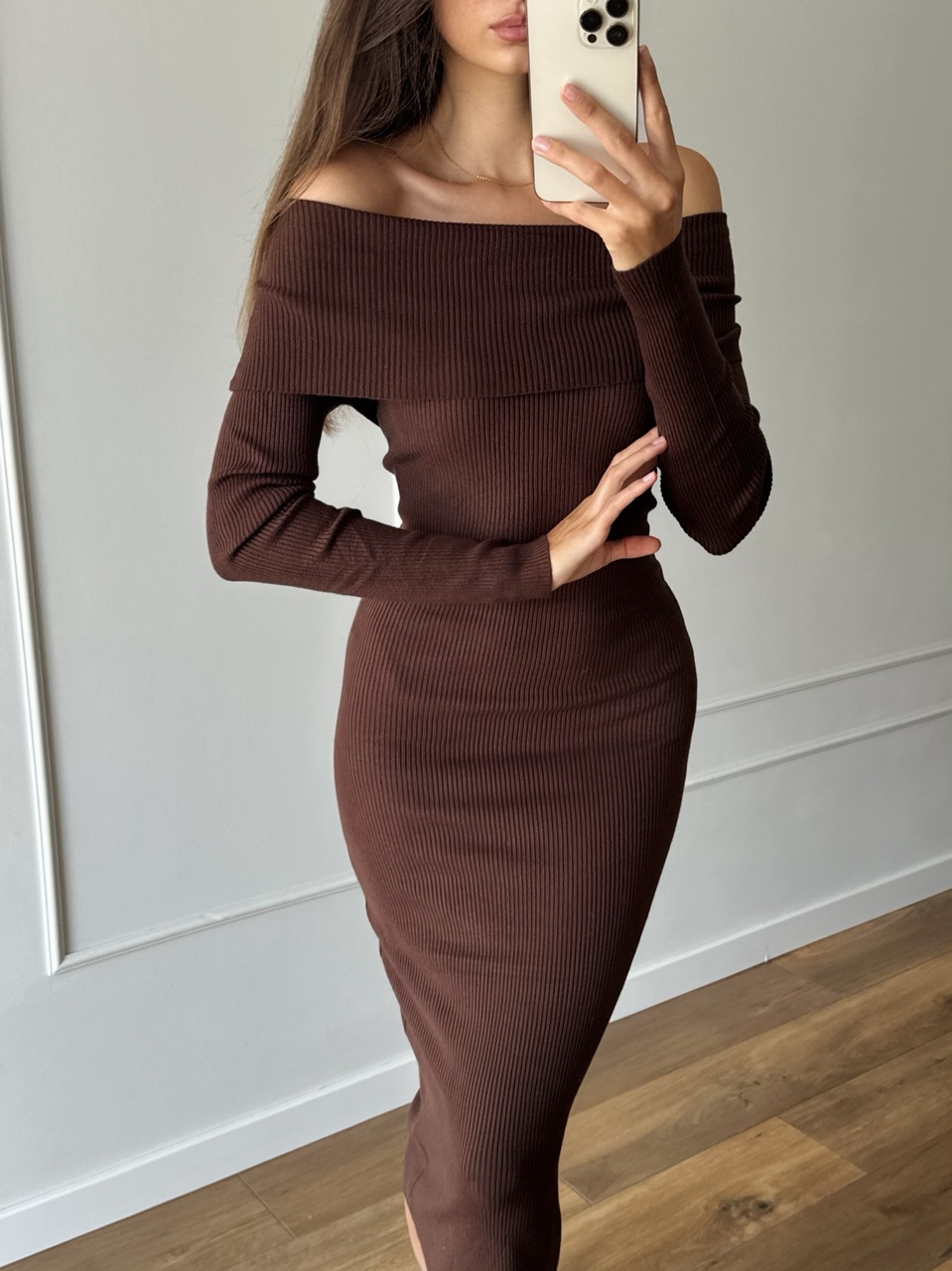 Prążkowany materiał pięknie dopasowuje się do sylwetki, a dekolt typu off-shoulder dodaje subtelnej elegancji. Sprawdzi się zarówno na co dzień, jak i na wyjątkowe okazje.
